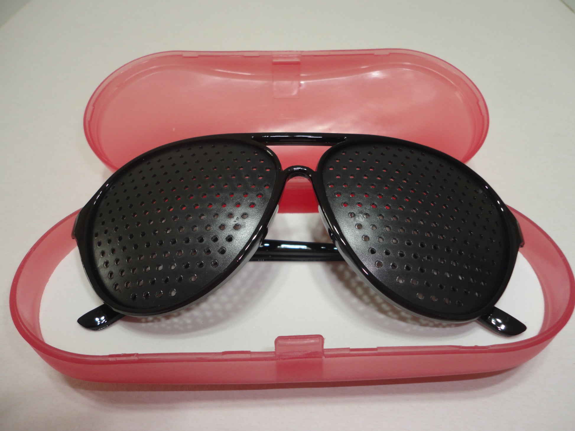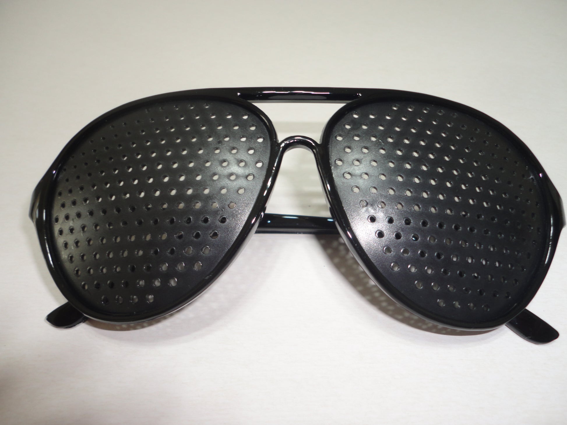 Aviator acetate pinhole glasses with round holes. They allow you to enjoy the effect at different heights. Suitable for all symptoms between 0 and 5 diopters
