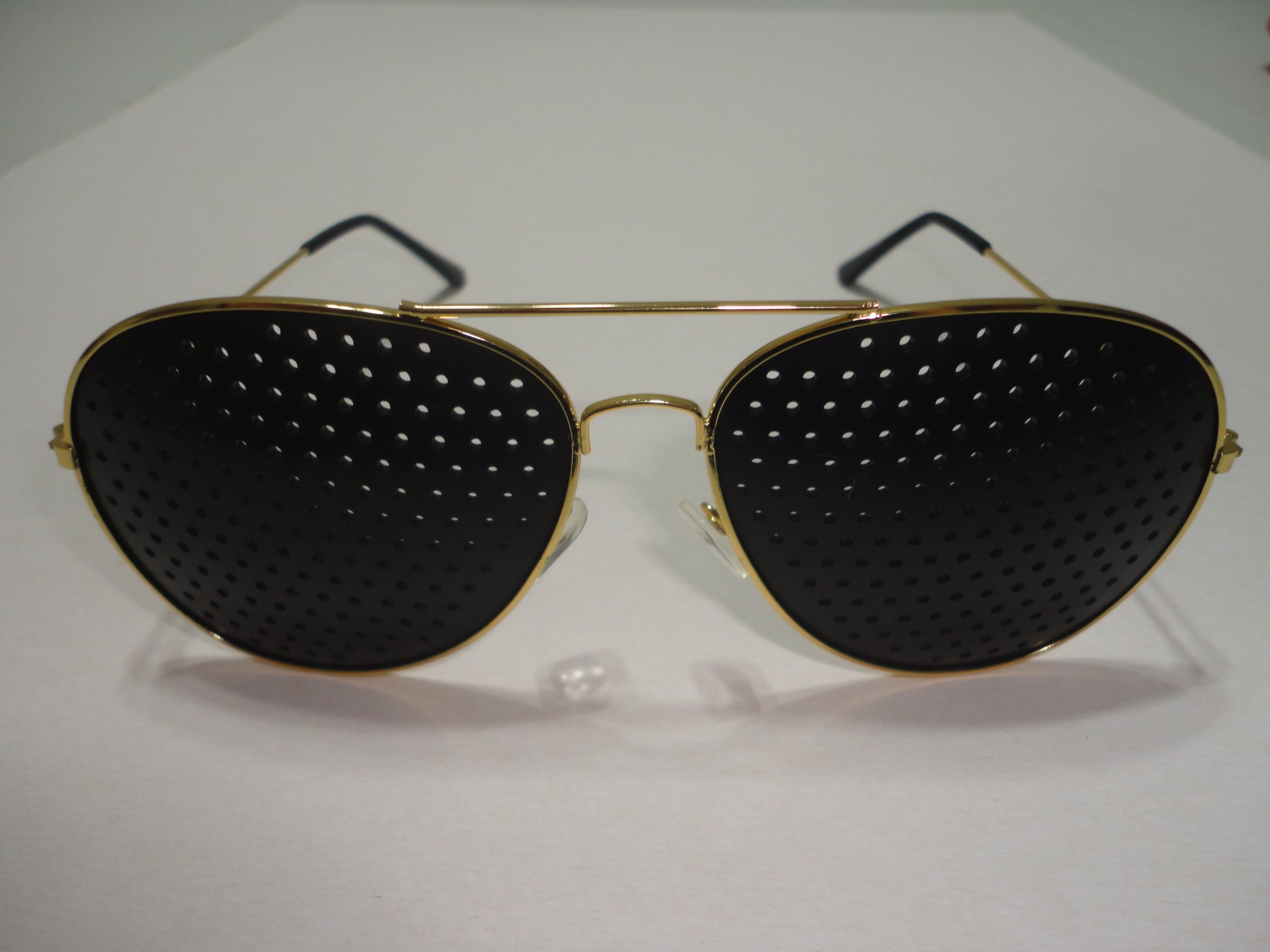 Metallic pinhole glasses with round holes. They allow you to enjoy the effect at different heights. Suitable for all symptoms between 0 and 5 diopters.