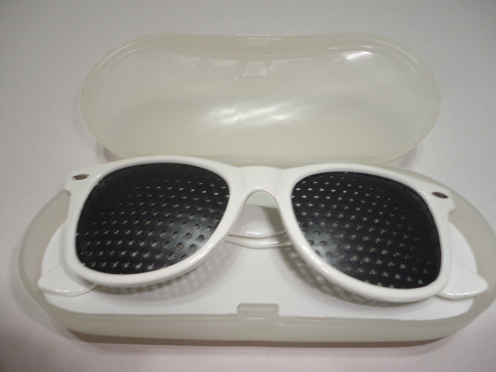 Acetate pinhole glasses with round holes. These glasses have a modern design. Suitable for all symptoms between 0 and 5 diopters.